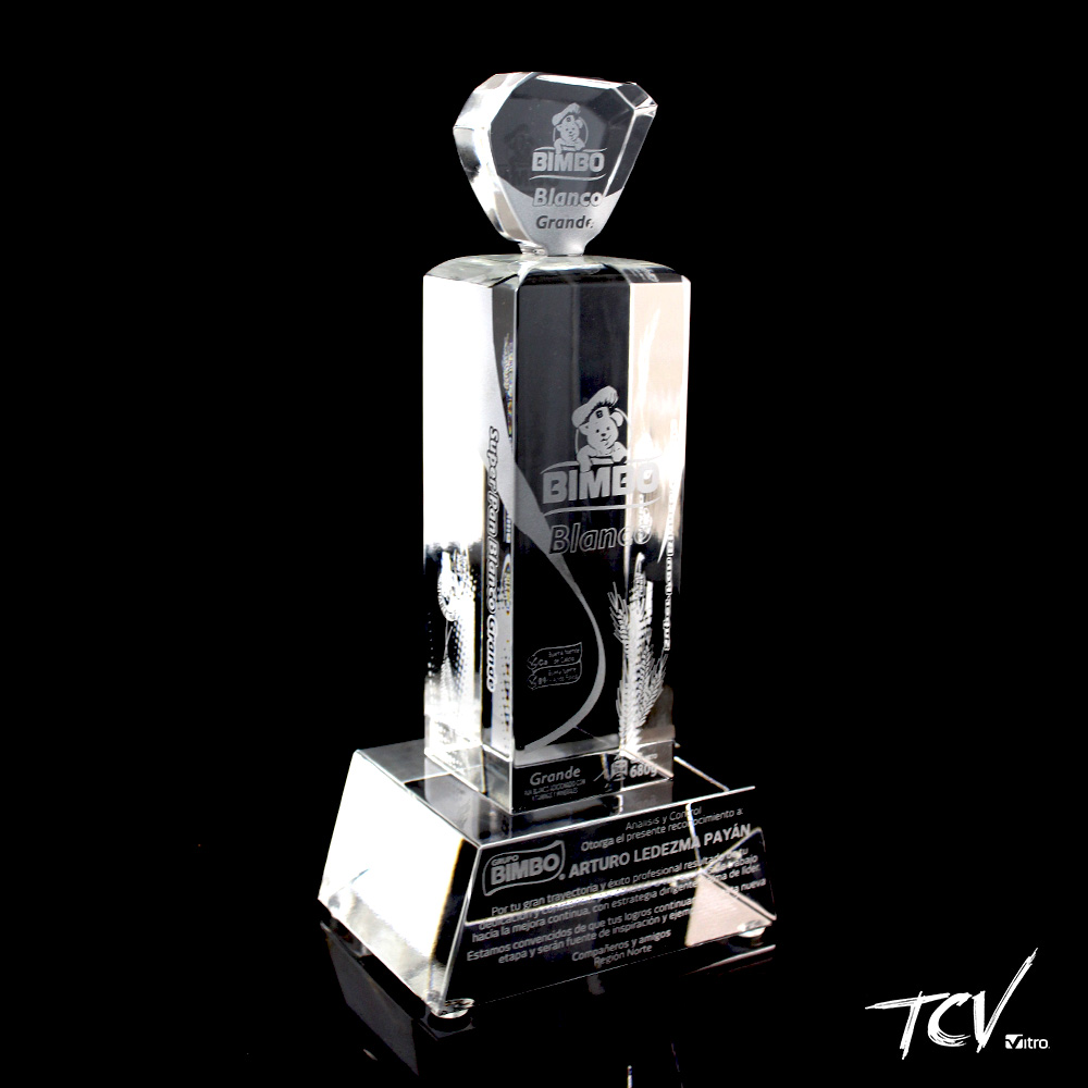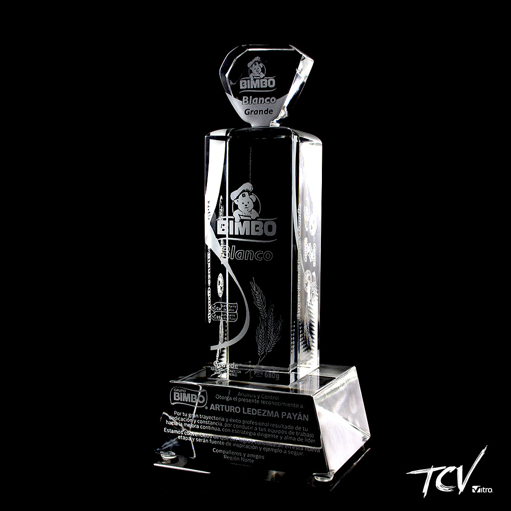 Barra de pan bimbo cristalina de 2 elementos sobre base piramidal cristalina.