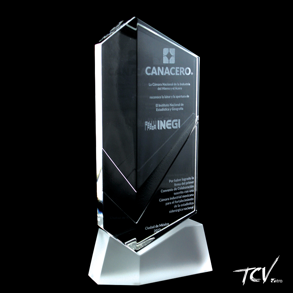 «Excelencia» Placa con facetas al frente y franja con Frosted en forma de «Paloma» (que representa calidad) sobre base satinada