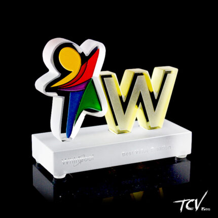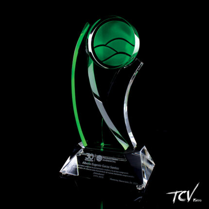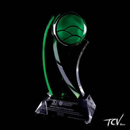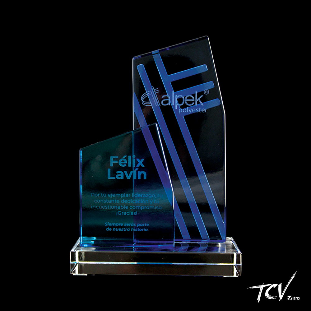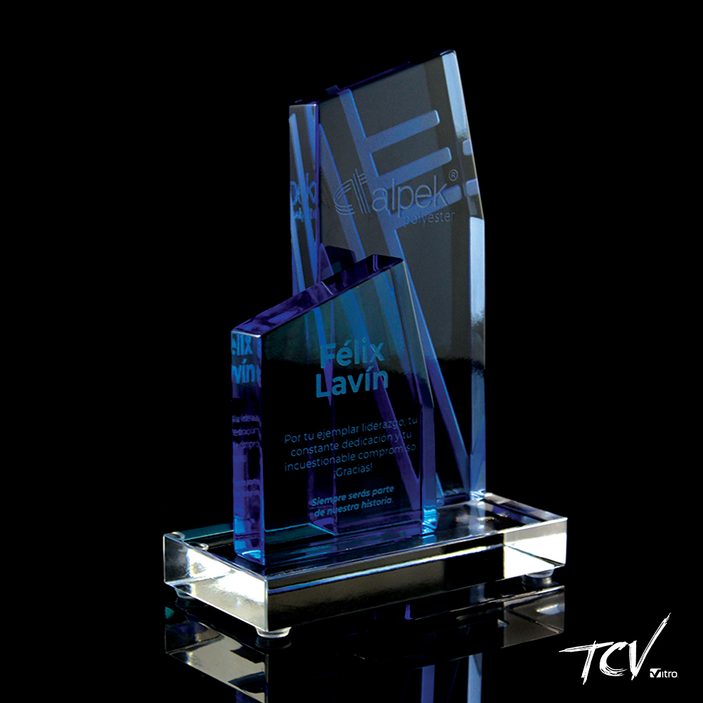 Placas de cristal de diferente color grabado al frente y a través de sobre base cristalina