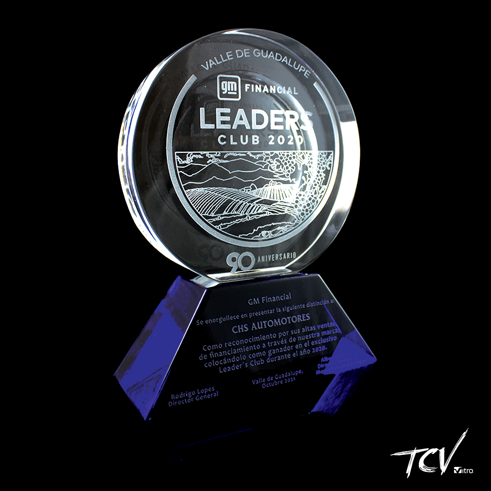 Oblea con asentamiento para pegado en base de color azul fuerte, la oblea lleva un lente a traves de