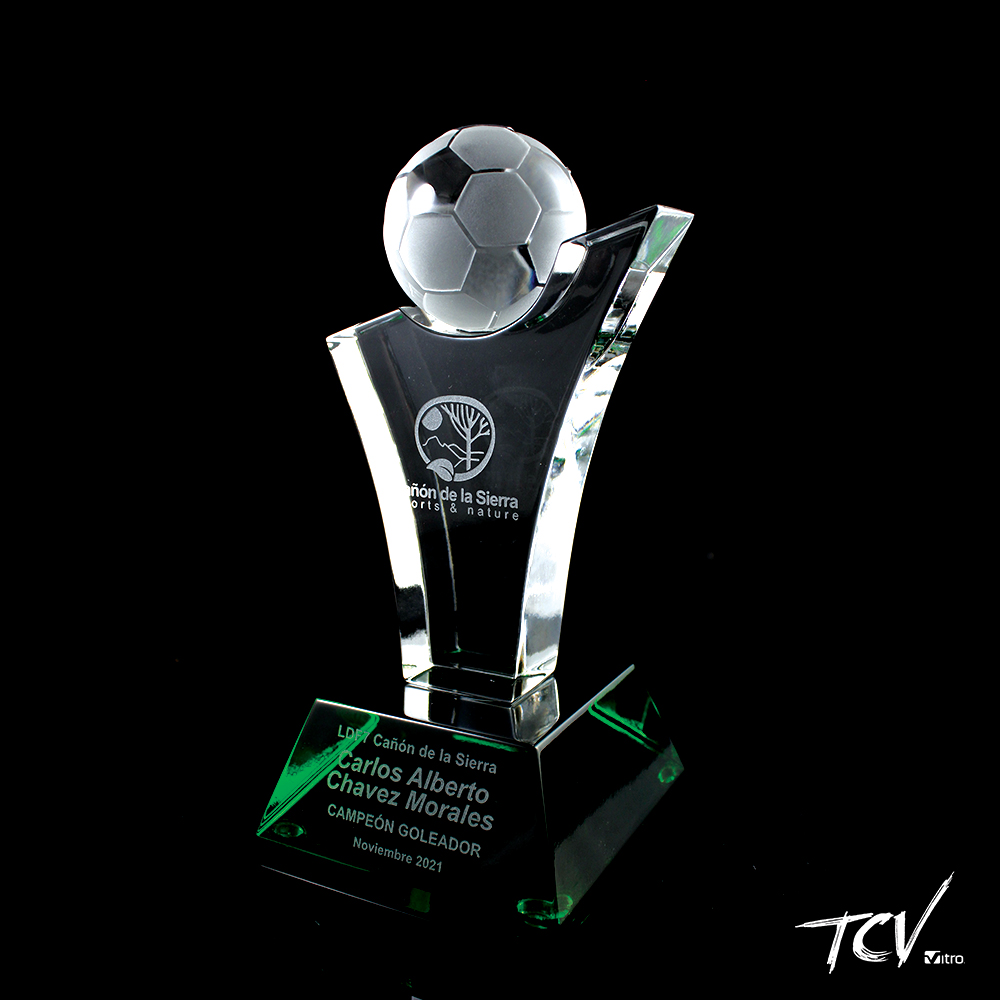 Trofeo Match. Representa el cuerpo o figura del futbolista en el campo enalteciendo al balon. Compuesto por 4 elementos